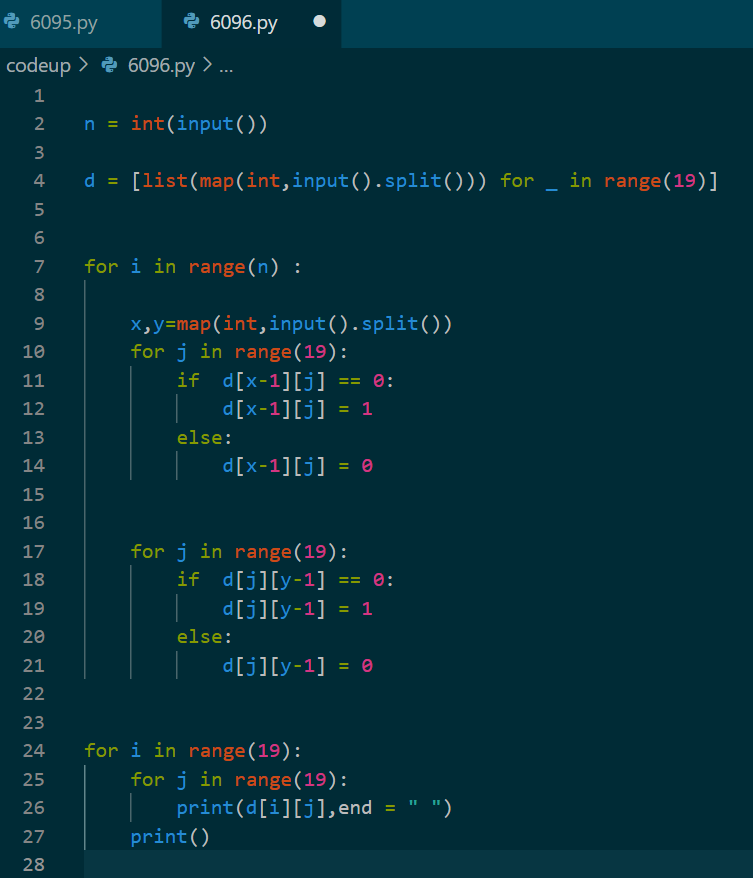 [codeup]6096 : 바둑알 십자 뒤집기(py)