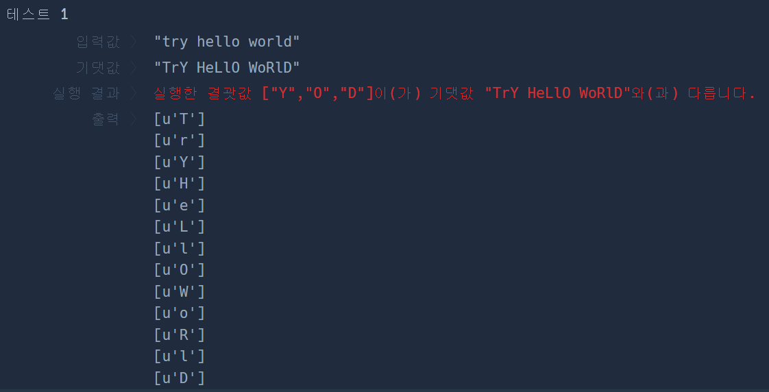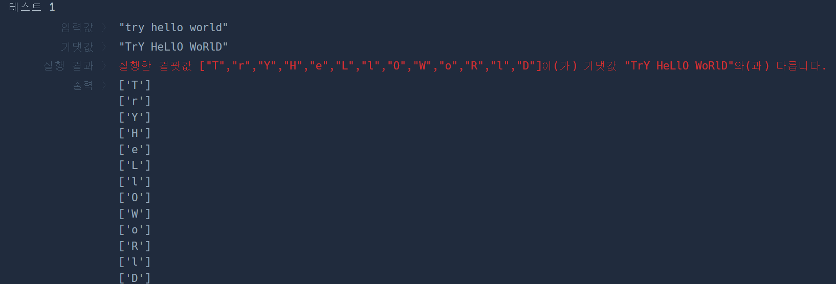 - 문자열 전체의 짝/홀수 인덱스가 아니라, 단어(공백을 기준)별로 짝/홀수 인덱스를 판단해야합니다.