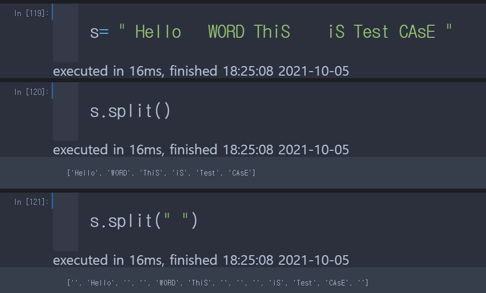 - 문자열의 앞, 뒤에 공백 포함 -> 결과에 포함하지 않음
