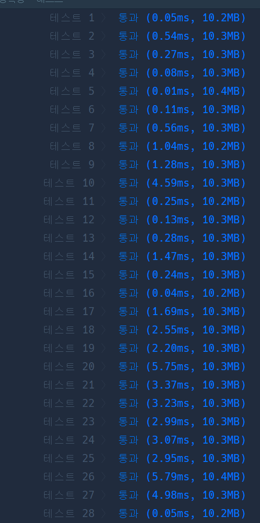 시간은 비슷한데, 몇몇 케이스(14, 17, 18, 19, 20, 21, 26)에서 오른쪽 코드가 오래 걸린다.