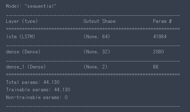 LSTM과 Dense layer를 통해 단순한 모델을 생성하였다.